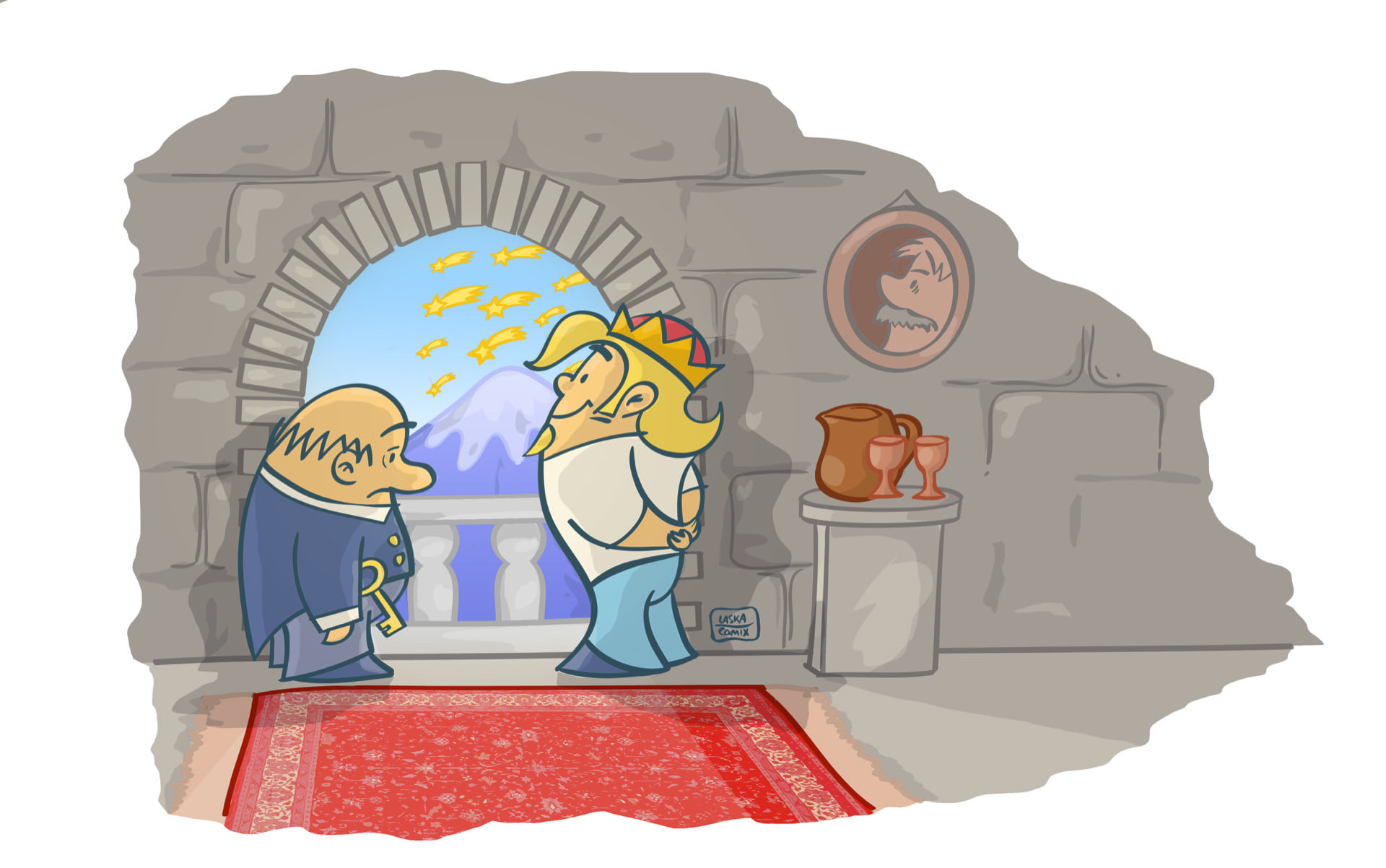 „So geht das nicht weiter,“ sagte der Schatzmeister, wie er es jeden Abend beim Abendbrot sagte. „Wir müssen etwas tun, Majestät. Sonst sind wir pleite.“